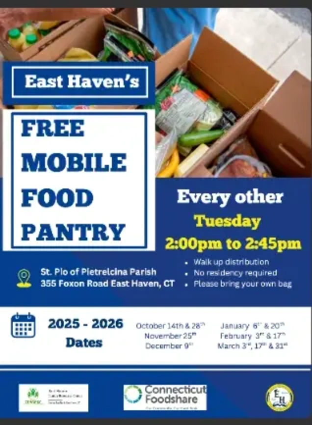 Don’t forget — the Free Mobile Food Pantry will be available tomorrow, Tuesday, October 28th, from 2:00 PM to 2:45 PM at St. Pio of Pietrelcina Parish.